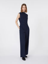 Tuta smanicata dalla linea dritta con gamba larga e piega stirata.