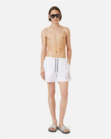 Fresco e contemporaneo, questo boxer mare nero è arricchito da stampe dal carattere distintivo. La coulisse in vita assicura una vestibilità regolabile, offrendo comfort e stile. Perfetto per un look estivo rilassato ma ricercato, ideale per giornate al mare all'insegna del dinamismo.