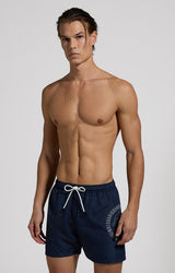 Caratterizzati dalla stampa ton sur ton che rappresenta l'iconico giocatore di calcio Bikkembergs, questi boxer mare da uomo sono dotati di un taschino posteriore con occhiello traspirante. Il costume presenta una chiusura a coulisse con vita elasticizzata.