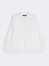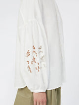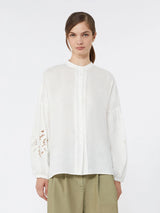 Camicia alla coreana, caratterizzata da maniche a sbuffo con motivo di ricami sul fondo.