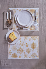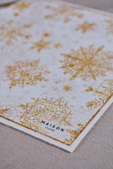 Lasciati incantare dalla magia dell'inverno con questo elegante set americano firmato Maison Sucree. Il design celebra la bellezza cristallina della stagione fredda con delicati fiocchi di neve dorati che danzano su uno sfondo bianco perlato, creando un'atmosfera di pura eleganza invernale.