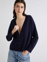 Linee attuali e morbido cashmere definiscono questo nuovo cardigan dalla linea boxy. Perfetto con i jeans flare, si abbina a pants e abiti stampati con sorprendente versatilità.