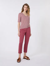 Pantalone slim fit, caratterizzato da taglio cropped alla caviglia.