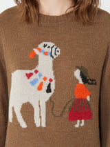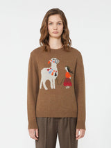 Maglia girocollo, personalizzata con motivo di collezione intarsiato al centro sul davanti.