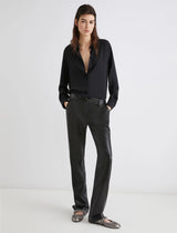 Ormai un must per il guardaroba quotidiano, il pantalone in jersey spalmato fonde il tocco urban dell'effetto pelle con un fit decisamente femminile. Abbinalo ad una maglia e alle ballerine per un daywear rilassato.
