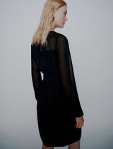 Abito in envers satin con linea fluida e focus sul punto vita: la cintura coordinata e la fibbia metallica creano un punto luminoso che allunga la silhouette e slancia la figura. Aggiungi le décolleté e il tuo look è già pronto.