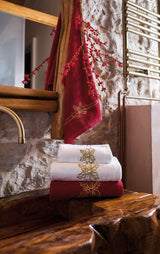 Ogni set è impreziosito da raffinati ricami floreali dorati che aggiungono un tocco di lusso e raffinatezza al tuo bagno, perfetti per le festività natalizie.