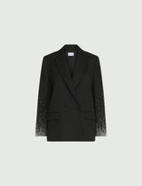Con i cristalli applicati a fondo manica in un disegno dégradé, questo blazer si inserisce con forza tra i capi cool del momento. Fluido sul corpo grazie alla viscosa stretch, si indossa day to night.