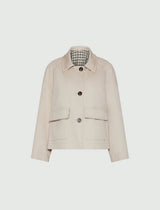 • Trench corto in gabardina di cotone stretch con fodera in pura lana