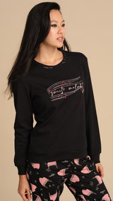 Lasciati avvolgere dall’eleganza e dal comfort del pigiama donna in caldo cotone interlock firmato Pepita, ispirato al mondo della musica. Un modello unico che unisce stile raffinato e morbidezza naturale, ideale per le stagioni fredde. La maglia a maniche lunghe in tinta unita nera è impreziosita da un ricamo con note musicali e scritta “Sweet Melody”, che regala un tocco originale e femminile. Il pantalone lungo, con pratica finitura a polsino, è decorato con la stampa esclusiva di pianoforti rosa, un disegno unico creato da Pepita per chi ama distinguersi anche nei momenti di relax. Perché scegliere il caldo cotone interlock? Il caldo cotone interlock è una maglia doppia di puro cotone che mantiene il calore corporeo senza appesantire. Più spesso e resistente del jersey tradizionale, garantisce benessere, morbidezza e traspirabilità, per un riposo notturno piacevole e avvolgente.