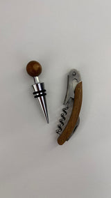 - Tappo salvavino con pomello in legno e base in acciaio inox