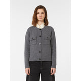 Cardigan in filato di pura lana con lavorazione a punto rasato. Dal volume morbido, il capo ha collo a giro, maniche lunghe, tasche con patta e bordi rifiniti con trama a coste. Chiusura con bottoni.