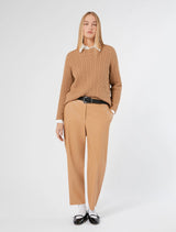 Lavorazione a trecce a capo integrale senza cuciture per la maglia in filato di misto lana e viscosa. Da interpretare in una miriade di stili.