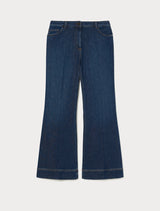 Linea attuale e versatile per i jeans in denim indaco blu stretch, trattato in capo. Perfetti di giorno e di sera.