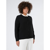 Aggiungi una nota grafica al tuo guardaroba con il cardigan girocollo in misto cachemire e lurex, impreziosito da un motivo ad intarsio sul retro che crea un fiore.
