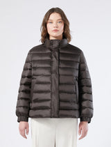 Perfetto per il city-chic l'imbottito in nylon cangiante, dalla linea dritta. Outerwear versatile da indossare day-to-night. Il capo fa parte della collezione Persona by Marina Rinaldi. - Nylon cangiante - Linea leggermente svasata - Collo alto con cappuccio a comparsa - Maniche lunghe con elastico ai polsi - Chiusura con zip e patta con bottoni nascosti - Tasche a filetto