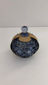 - Contenitore in vetro blu con texture decorativa