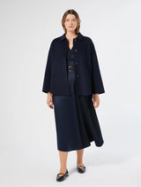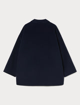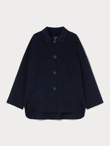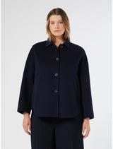 Modello overshirt per il giaccone in double di misto lana, dalla linea dritta. Perfetta come outerwear per passare da una stagione all'altra.