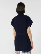 Giacca smanicata con cintura abbinata da annodare in vita.